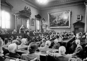 - "It was little more than a hundred years ago that the States Assembly was enlarged to admit Deputies. Until then it consisted only of the Jurats, Rectors and Constables. When I entered the States as a Deputy some 40 years ago French was the language largely in use in debate and almost exclusively for legislation. When, however, some years later the Income Tax Law had to be drafted it had to be in English because no one could draft it in French. Whereupon one distinguished but very conservative Jurat asked the Bailiff to rule whether it was constitutional for a law to be passed in Jersey in a foreign language.