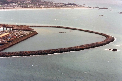 St Helier Harbour with the New North Quay across the centre