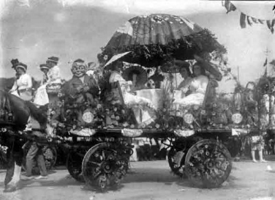 The first photographs of the Battle of Flowers from 1902 onwards concentrated on general views of the arena and the audience.
