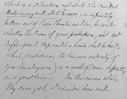 In the letter, she wrote: "I congratulate myself on the prospect of having you for my daughter-in-law" – a positive start to any letter from a future mother-in-law! However, the letter went on to give four long pages of advice about the married state, beginning with the statement that it is uncertain whether becoming a wife will "conduce your happiness or no".