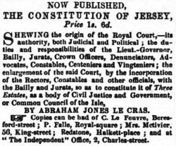 Had he lived 170 years later Le Cras would undoubtedly have had his own political blog and been a regular contributor to the correspondence columns of the Jersey Evening Post, and would undoubtedly have stood for election to the States, but in the 1830s the only elected posts were those of Constable and Jurat, and both would have been beyond the reach of a political agitator like Le Cras.