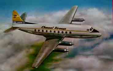 In 1956 the name was changed to Cambrian Airways and by 1964 it was operating the Vickers Viscount on charters throughout Europe. Cambrian operated from Swansea to Jersey from 1957 onwards, using Doves. At that time the Channel Island routes dominated their timetable, with 44 return flights a week from Cardiff, Gloucester and Whitchurch to Guernsey and Jersey, as well as direct flights from Liverpool.