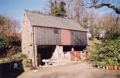 A building is also shown on the Richmond Map in approximately this location, but this may have been rebuilt on a slightly different footprint. A slit between these buildings would produce a loud piping sound, like a pipe organ, when the wind was in a particular quarter and was blocked up. This led on to the upward sloping farmyard leading to the brook that passed under the house, and to what the family wrongly called ‘The Dutch Barn’ - a distinctive type of Jersey barn with vertical wooden planks treated with pitch, on the first floor, between two granite gables with brick quoins.