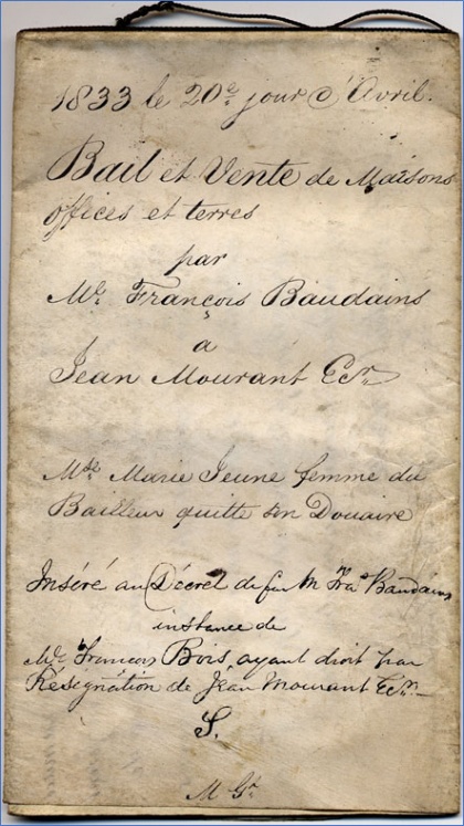 - 1833 (20 April) Jean Mourant on behalf of François Bois from François Baudains.
