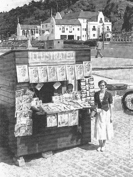 Why have newspaper and magazine kiosks disappeared in Jersey? And, for that matter, in the British Isles generally. They are still a familiar sight in many European countries. This lovely photograph shows Iris de la Mare outside her kiosk on the slipway at West Park. We don't know the exact date of the photograph but everything seems to point to the late 1930s