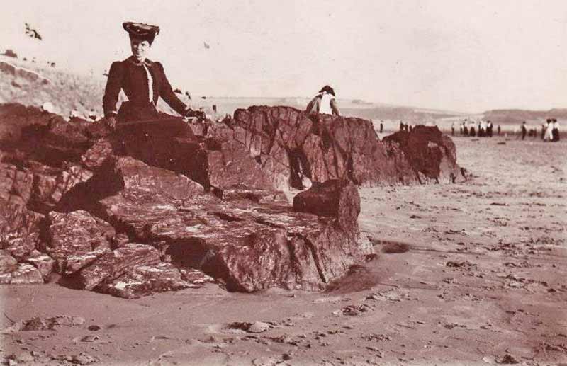 Not a lot can be written about this picture of a stylish Victorian lady on the beach at West Park, except to say that it illustrates perfectly how people dressed over a century ago when they ventured on to the beach. West Park, on the western fringes of St Helier, was a popular venue. The outline of Fort Regent can be seen clearly on the skyling behind the subject