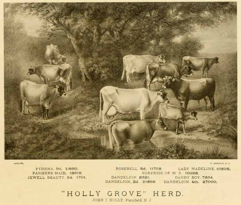 An important part of this wide-ranging website is its bibliography of books, newspapers and magazines about the island and published in the island. One section attempts to keep track of the growing number of these books which can be read online. We have just discovered an excellent book entitled Jersey Cattle in America written in 1885 John S Linsley and published in New York, and we have chosen this picture from its frontispiece as our feature picture this week. Further pictures from the book will be added to the site in due course