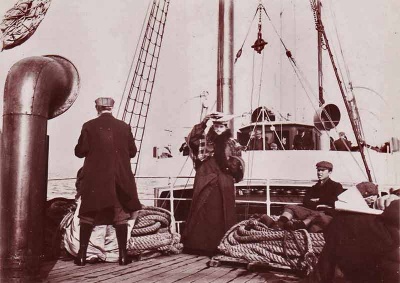 Our Picture of the week regularly features an aspect of the island which has changed dramatically or disappeared altogether since the photograph was taken. This week's feature picture is one of those which conjures up images of a time when life was lived at a different pace, and in a different style. This photograph was taken on the deck of the steamship Laura between Jersey and St Malo in 1905. Unfortunately we have no information about the people in what is a lovely photograph. But how much better could it have been if the portly gentleman had been facing the camera rather than looking the other way? One can only surmise that he did not want his picture taken and was deliberately looking the other way, because otherwise surely the photographer would have waited until he turned round.