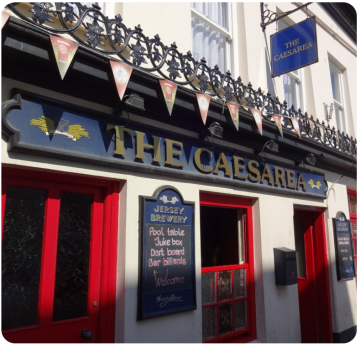 It is unusual to have two public houses next door to each other, and even more unusual if they are owned by the same brewery, but that's exactly what is to be found in St Helier's Cattle Street, where the Aurora Hotel and the Caesarea have been side by side for well over 100 years