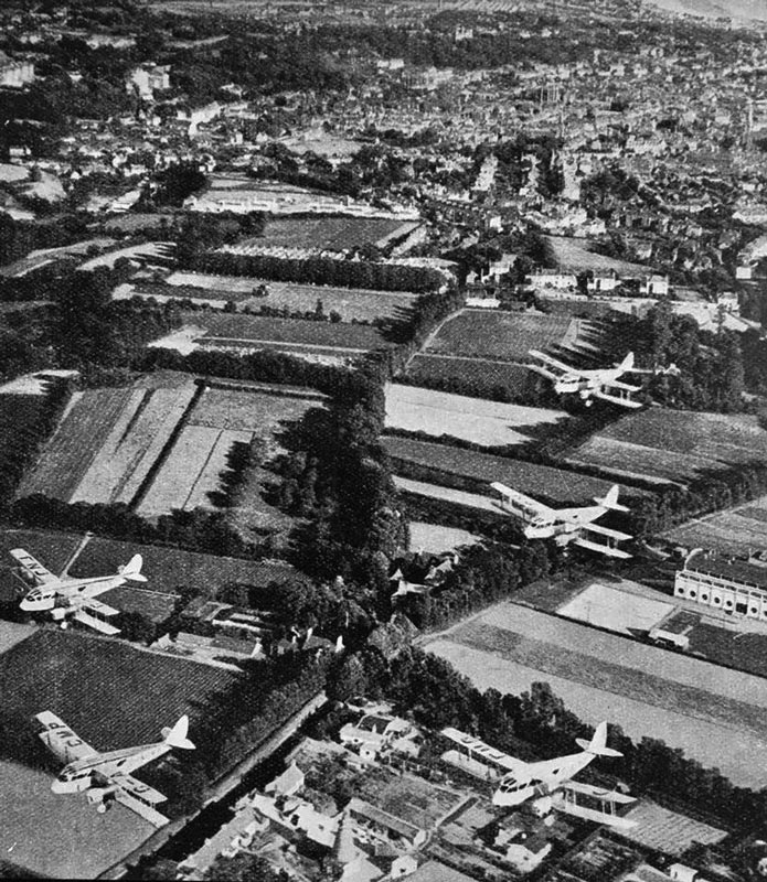Jersey Airways aircraft line abreast on the apron in 1937 ...