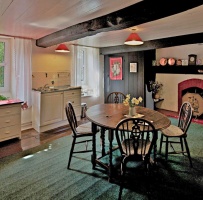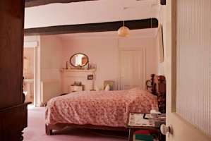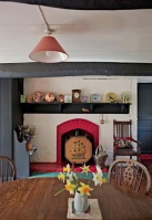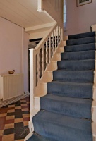 Mrs Stevens dated the rounded arch of the front door to as early as 1500, and noted that all the windows had been enlarged and the roof probably raised. The only date found on the house is one of 1858 on the garage. Panelling in the ground floor has been dated to 1750.