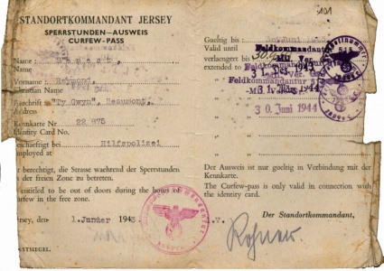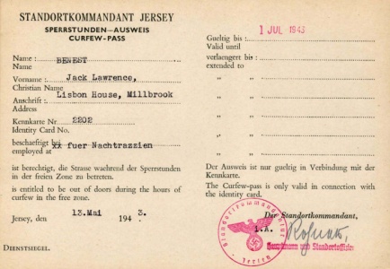 These curfew passes were issued to Jack Benest and Raymond Benest during the Occupation as members of the Honorary Police [2]