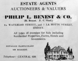 Auctioneer Harold Benest was in business at 1 Mulcaster Street, as shown in this 1939 advert in Chronique de Jersey