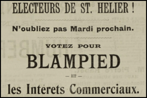 An unusual mixture of businesses for this Blampied family: Coal merchants with an Esplanade depot, and tailors in partnership with Lafolley, in Broad Street. And further adverts indicate that they were also involved with two insurance companies