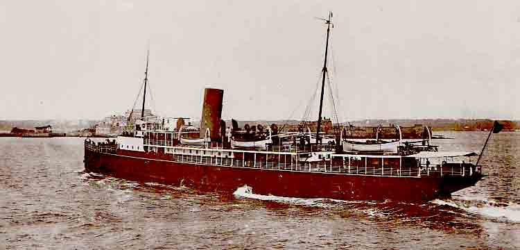She was also requisitioned during the First World War but was less fortunate than Caesarea. She was used as an armed boarding vessel in the Mediterranean, until she was torpedoed and sunk by a U-boat on 12 September 1918.