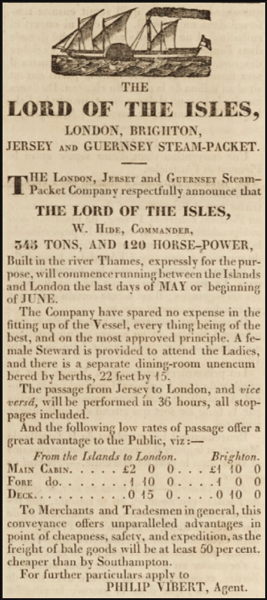 | Bristol | Wooden paddle steamer | Operated to Jersey in 1829 | |