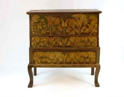 Contact from anyone owning a chest, usually on a stand with a lift-up top above a drawer, painted with carnations and tulips (see illustration at top of page)