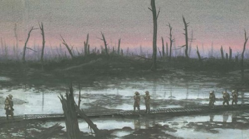 That dash will live long in my memory; every few steps we sank nearly to the knee in sticky mud, or found ourselves tangled in barbed wire, but my pal and I held hands so as not to lose touch with each other. How we got across, I really don't know. We could hear the crashing of shells directly ahead of us, and see the flashes as they burst, but to stop where we were would have been madness, so we went ahead, guided by the flashes of our own guns.