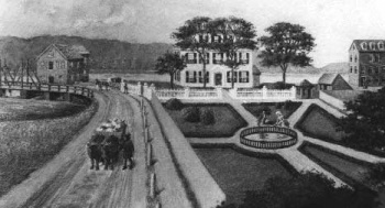 - "The first white settlement was laid at Portsmouth as early as 1623. Quite naturally, these pioneers fringed the shore of the bay and the lower banks of the Piscataqua. Early growth was probably slow, but as accretions came to the population with the succeeding decades, the old town extended back toward the higher eminencies and along the paths and lanes which are now the down town streets of Portsmouth. The early settlers were probably fishermen or sailors; at times trading with their Indian neighbors, who were not always too friendly. Shipbuilding, early became an important industry.