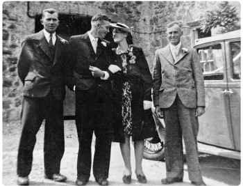 John Courcoux and Renee, nee Sauvey, with their fathers after their 1944 wedding. The picture was taken at Les Chasses Farm, St John