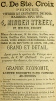 One of the longest lived and most successful auctioneer and estate agency businesses in Jersey during the 19th century was Victoria Auction House at No 9 Library Place. The business was founded by Philippe de Ste Croix before 1833 and he ran it until his death in 1873, when his son Charles took over. A second son, Philippe jnr, is shown running the separated estate agency business next door at No 11, and when J G Pallot took over the business from Charles, Victoria Auction Mart was operating at No 7. The advert below from L'Impartial in 1833 suggests that Philippe started his business in the Royal Square, moving later to nearby Library Place