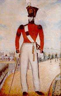 - ↑ Drill Sergeant, and then Sergeant-Major, Militia. The portrait of him in uniform shows his three chevrons, surmounted by a crown, for Sergeant-Major