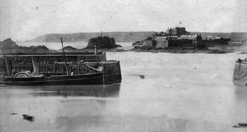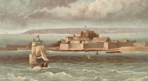 An 1875 print of a view of the Castle from St Helier Harbour ...