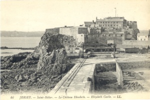 Elizabeth Castle. About half a mile out to sea from St Helier lies an islet 60 yards broad and about 500 yards long, which can be reached at low tide by a causeway of shingle across the sands. For 400 years this contained a priory, and for the last 350 years a castle.
