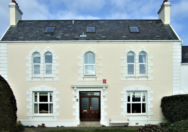 Two-storey, three bay house with rear wing. Modern conservatory and extension.