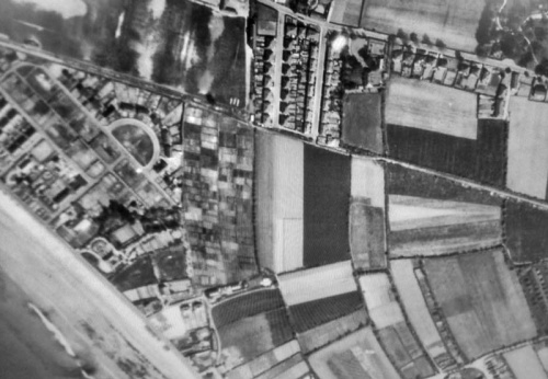 With food beginning to become scarce, the area which is now the athletics track was used as vegetable allotments in 1942. The Jersey Allotments Council provided 100 allotments at a charge of 10s per season. They can be clearly seen on an aerial photograph from 1944.