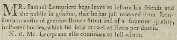 S24Gazette1803SamuelLempriere.png (607 × 139 pixels, file size: 76 KB, MIME type: image/png)