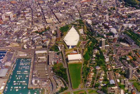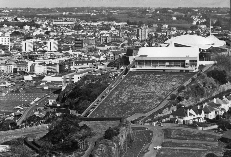 A decision to develop Fort Regent as a leisure complex was taken in December 1967. In 1970 the cable car facility was opened which gave access to Fort Regent from snow hill, this was closed to public use in 1991. In 1974 the Fort was roofed over.