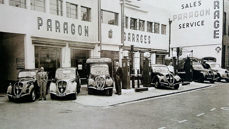 Peugeots for sale on the forecourt of Paragon Garage in 1946 or 47
