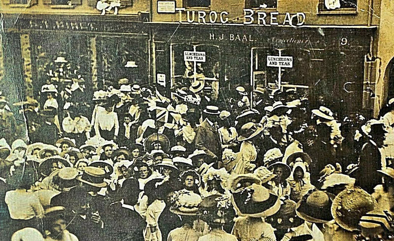 This photograph has 'Census 1911' written on the back. Quite why, escapes us, because, far from having any connection with that year's census, we believe that the picture shows the crowd passing through Cheapside on the way from the Royal Square celebration of the Coronation of King George V, to the fete held on the People's Park