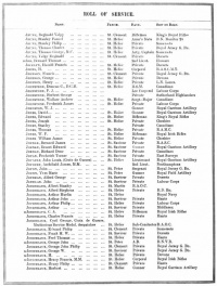 After the end of the First World War the States of Jersey created a list of all those islanders who lost their lives during the conflict, and in 1919 they published an official Roll of Honour. This document also included a Roll of Service, containing the names and units of those known at the time to have been in the armed services during the war. This page contains links to that Roll of Service.