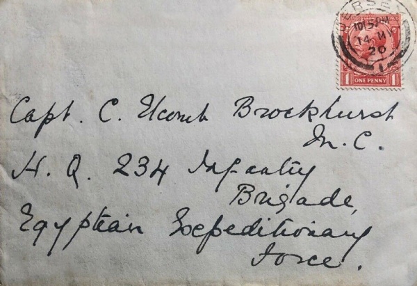 Capt Cyril Brockhurst was still serving in the Army in Egypt in 1920