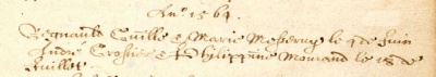 The record of the marriage of Andre Grossier and Philippine Mourand in St Saviour in 1564