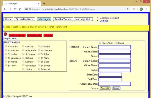 We are going to focus on marriages, because that is the most complex of the three sections - but complex does not mean that it is complicated, or in any way difficult to use. It just involves two people, rather than one for births and deaths.