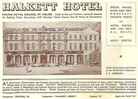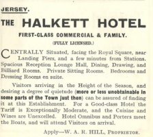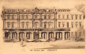 The Halkett Hotel was at the southern end of Halkett Place, formerly Morier Lane, and occupied the site where the States offices, Morier House, now stand. |