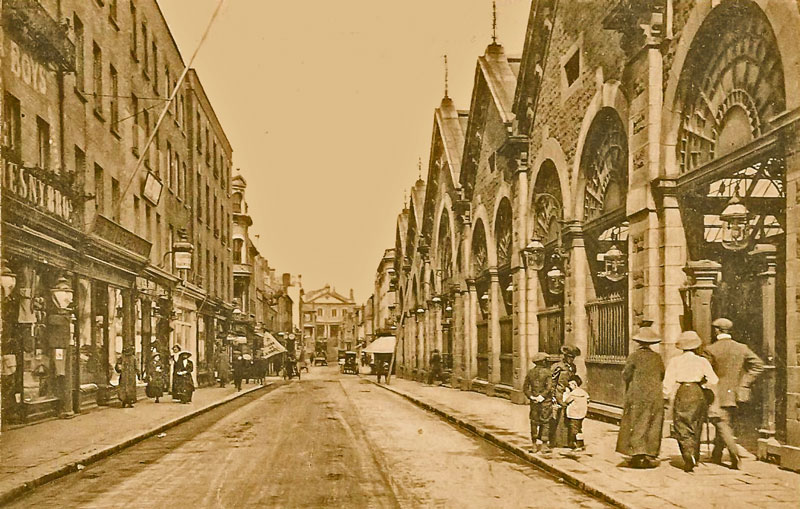 Halkett Place started life as a private road under the name La Rue de Nouveau Marche', or Market Street, as it is shown on a survey in 1800. It was in that year that the States decided that noise and congestion on market days in the Royal Square meant that the time had come to build a new market, and it opened its present site in 1803. The structure was roofed on three sides for goods such as vegetables and dairy produce, with covered butcher’s stalls in the middle. The larger covered market that we now know was not opened until 1882.