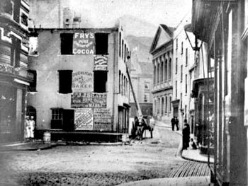 Amy's gentleman's outfitters on the corner with Queen Street being demolished prior to rebuilding