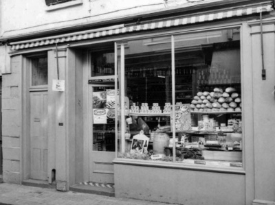 This picture was taken in the mid-1970s by Andre Ferrari, a noted campaigner for the preservation of St Helier's remaining original architecture. He comments:'This photo has acquired its own historic interest. Most of the opposite side of the street has been redeveloped. The ladder on the right shows work in progress on what was to become the House of Dupre - an upmarket, indoor stores-within-a-store concept. Jersey was starting to get a bit above itself, and they had a liveried gentleman at the entrance to welcome you in (I used to deliberately go through the place in my scruffy anorak for the pleasure of having the poor guy open the door for me!). But the real interest is the hanging sign in the top left: The Pantry! I still yearn for the smell of that shop and the taste of their pies! Who remembers the wonderful chicken vol-au-vents, with a sliver of tomato and sprig of parsley on top? The Pantry eventually got taken over. I think it was by Le Bruns, who were taking over everything (including the newer Hot Bread Shop around the corner in French Lane). And that was the beginning of the end...