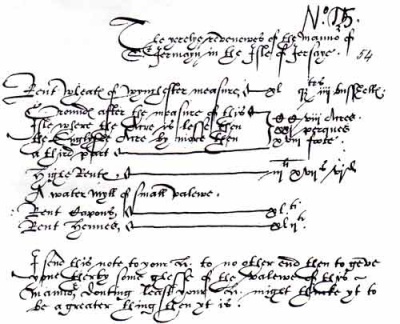We are told that that Edward VI granted "the same" to Sir Hugh Poulet into whose hands the fief thus fell at Helier's death in 1561. Queen Elizabeth then granted it for life to Sir Amias Poulet, his son, who goes on to ask that it be granted to him "in fee simple at a reasonable price” promising to use the resulting income on fortifications at Mont Orgueil Castle.