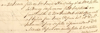 Jean Hardeley was baptised in St Peter in 1816