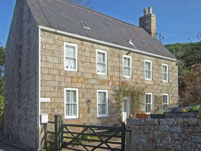 House: 2 storey, 5 bay. Front (south) elevation: slate roof with pair of finely dressed stone chimneys. Ashlar stone construction with dressed long/short openings and a gable datestone bearing H P. 1822. Single pane timber sashes, timber glazed door with overlight.