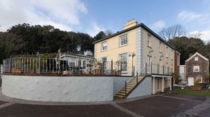 A mid-19th century property retaining original exterior features, proportions and character in a prominent hill top location; contributing positively to the character of the area. 2 bay, 2 storey classically proportioned house, with rear wing. South elevation: Hipped slate roof with central rendered chimney with moulded and bracketed rim. Stucco walls with rusticated quoins, quoined window surrounds and lintels. String course between ground and first floor. First floor windows are 6 pane (3/3) sashes. Ground floor windows 15 pane (6/9) sashes.