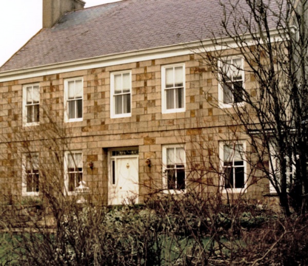 Two-storey five-bay mid-19th century farmhouse which retains its character and proportions with fine stonework. Its outbuildings form a cohesive group.