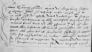 The account shows that he had long been suspected of the crime of witchcraft and that he was condemned to death by an inquiry of 24, men who found that he was a witch 'with a wicked and unstable life'. He was condemned to be strangled and then his body to be burned and reduced to ashes with all his goods to be confiscated and claimed by the Crown.