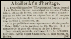 - Syvret: Mrs Syvret sold the house in 1890
