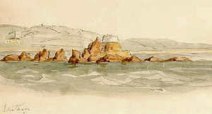 - ↑ Archaeologists have found flints, pottery and human bones on the islet, suggesting that it was inhabited in Neolithic times, although it may not then have been an island, depending on where the sea level was. Icho has variously been known as Le Hyge Hoge (1563 map), Ickhoe (1685) and Croix de Fer (1645, 1737 and 1825). This is a reference to an iron cross which once stood there, but had long disappeared.